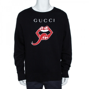 Gucci Black Vintage Logo Print Cotton Hooded Sweatshirt M