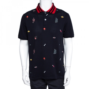 Gucci White Horse Embroidered Cotton Slim Fit Polo T-Shirt M