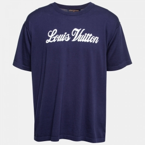 Louis Vuitton Navy Blue Cotton Patch Front Crew Neck T-Shirt S