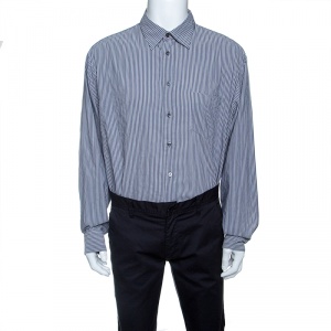 Armani Collezioni Navy Blue Striped Cotton Shirt XXL