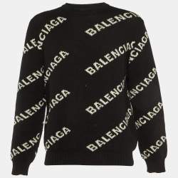 Balenciaga Beige Monogram Jacquard Wool Knit Crew Neck Sweater XS
