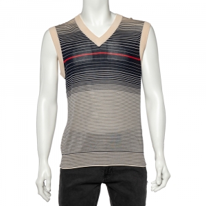 D&G Cream Striped Silk Knit V-Neck Vest XL