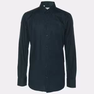 Dolce & Gabbana Gold Navy Printed Cotton Button Down Shirt XL