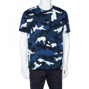 Valentino Navy Blue Camouflage Print Cotton Crew Neck T-Shirt L