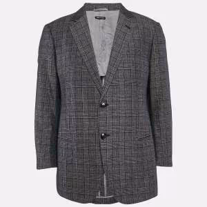 Giorgio Armani Navy Blue Prince Of Wales Checked Wool Blazer XXXL