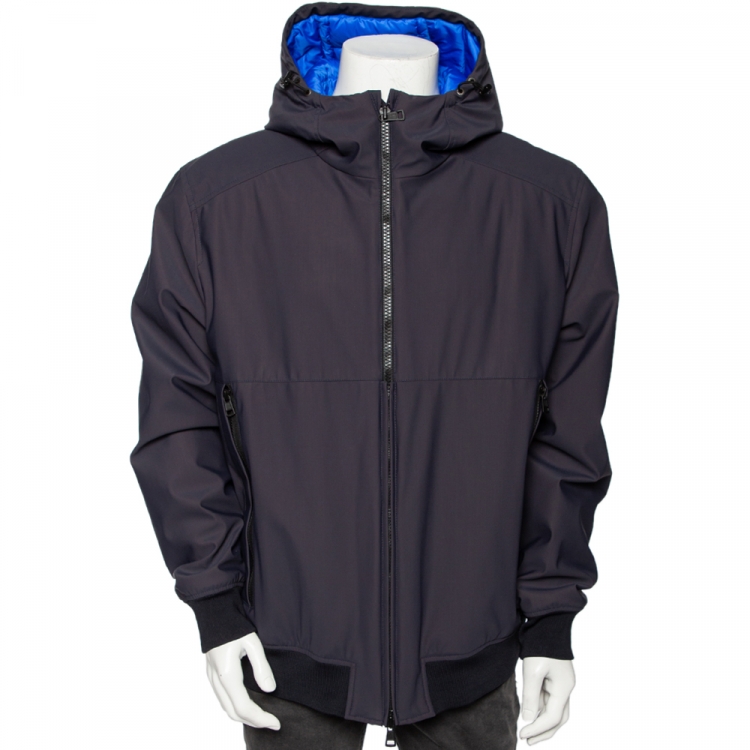 Moncler Dark Blue Down Synthetic Derva Hooded Zip Front Jacket XXL