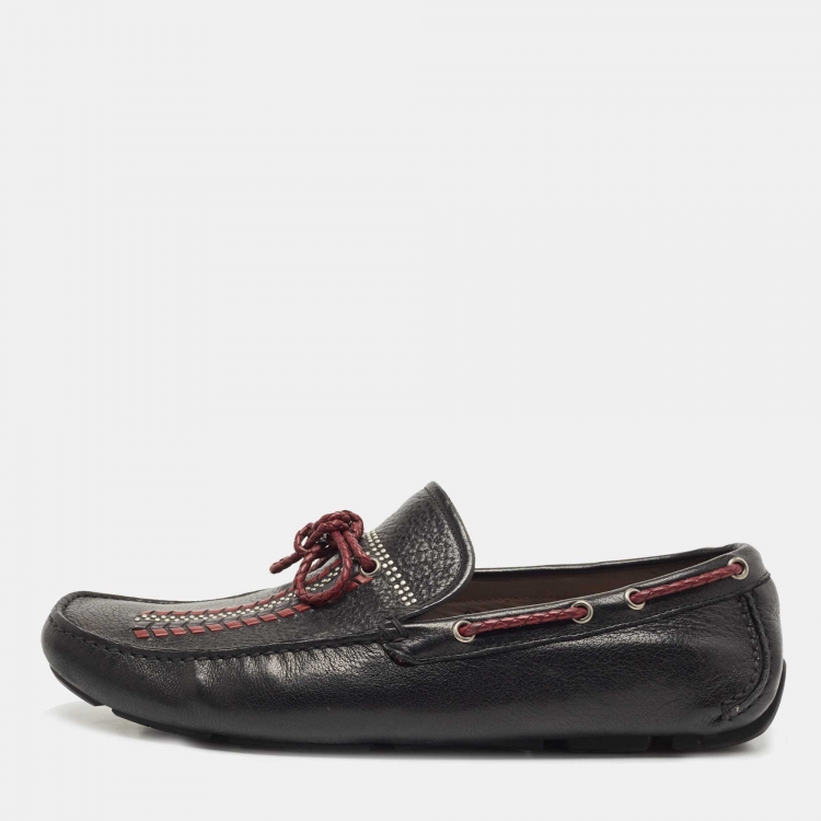 Salvatore Ferragamo Black Leather Braided Bow Loafers Size 44