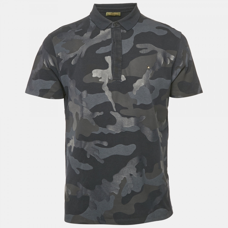 Valentino Navy Blue Camouflage Print Cotton Pique Polo T-Shirt M