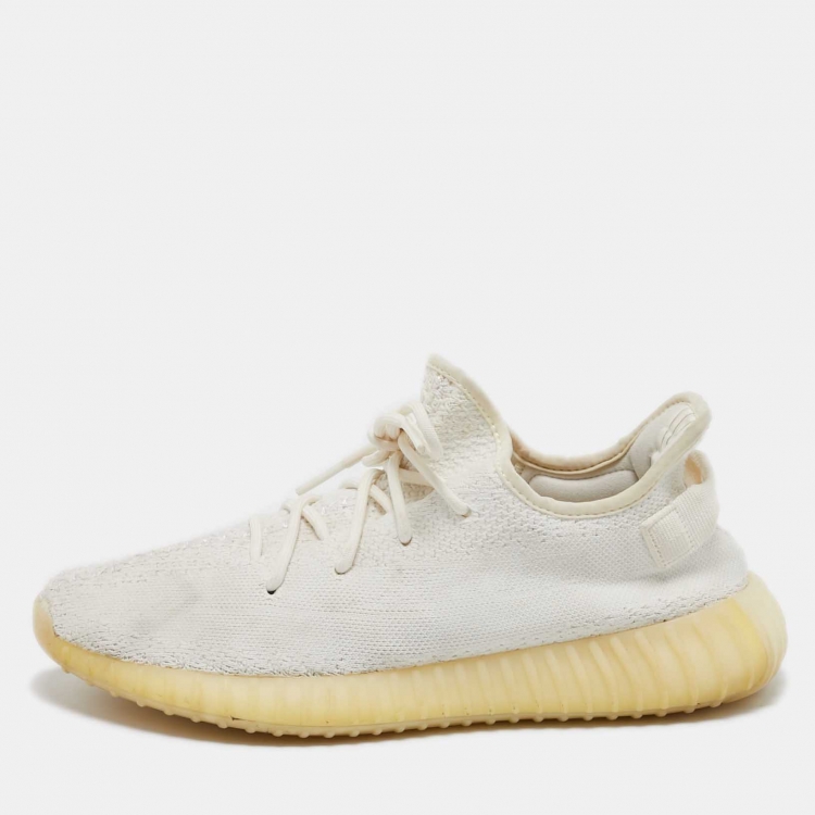 مملوكة مسبقًا Yeezy x Adidas White Knit Fabric Boost 350 V2 Triple White Sneakers Size 44 2/3