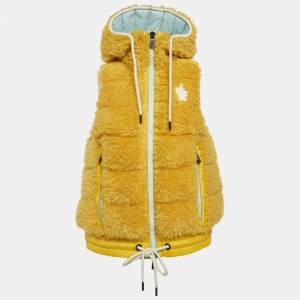 Moncler Grenoble Yellow Faux Shearling Teddy Down Gilet XS