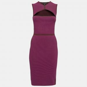 Narciso Rodriguez Purple Silk Knit Cut Out Yoke Sleeveless Sheath Dress S