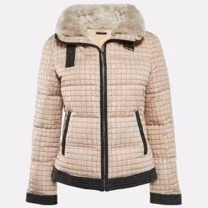 Sisley Beige Crepe Fur Collar Detail Quilted Puffer Jacket M