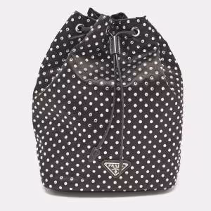 Prada Triangle Logo Embossed Black Vitello Dain Leather Bag