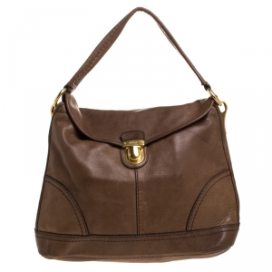 Prada Brown Vitello Daino Leather Side Zip Tote
