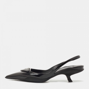 Prada Black/Pink Patent and Leather Bow Ballet Flats Size 38.5