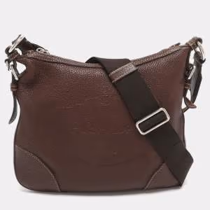 Prada Logo Embossed Brown Leather Crossbody Bag