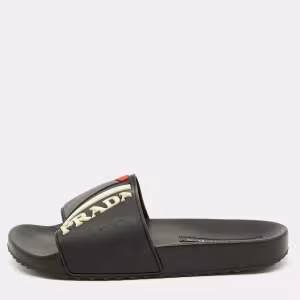 Prada Monolith Size 44 Black Leather and Rubber Loafers