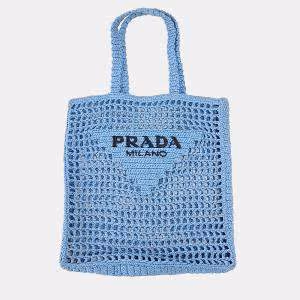 Prada Sky Blue Raffia Shoulder Bag