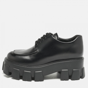 Prada Black Leather Monolith Platform Lace Up Derby Size 36