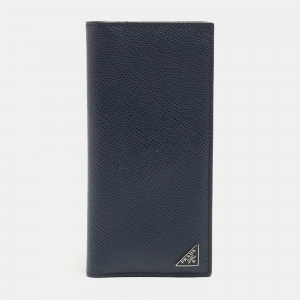 Prada Blue Saffiano Leather Bifold Long Wallet