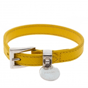 Prada Yellow Saffiano Leather Silver Tone Bracelet