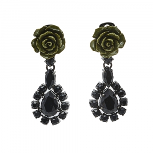 Prada Green Resin Rose Crystal Clip On Drop Earrings