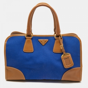 Prada Brown/Olive Green Gaufre Leather and Nylon Tote