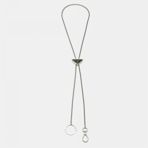 Prada Triangle Logo Enamel Silver Tone Keychain Necklace