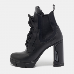 Prada Black Leather Knee High Block Heel Boots Size 36