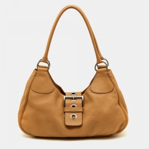 Prada Beige/Gold Logo Jacquard Canvas and Leather Messenger Bag