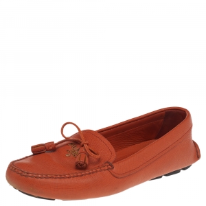 Prada Orange Leather Bow Slip On Loafers Size 38
