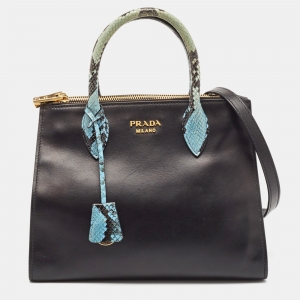 Prada Black/Blue Leather and Python Double Zip Tote