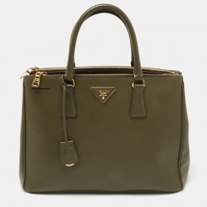 Prada Green Saffiano Leather Double Zip Tote