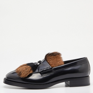 Prada Black Patent Leather Bow Slip On Loafers Size 39.5