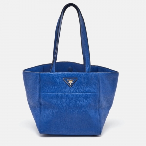 Prada Blue/White Saffiano Lux Leather Open Tote