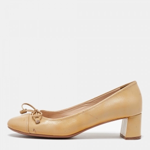 Prada Cream/Brown Leather Bow Peep Toe Slingback Sandals Size 37.5