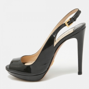 Prada Black Leather and Sequin Flower Embellished Peep Toe Pumps Size 40