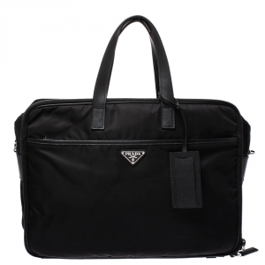 Prada Black Saffiano Lux Leather Small Double Zip Tote
