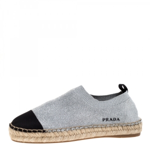 Prada Silver/Black Brogue Leather Pointed Toe Smoking Slippers Size 37