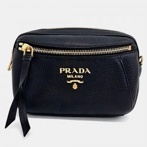 Prada Black Vitello Shine Leather Fringe Shoulder Bag