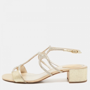 René Caovilla Gold Crystal Embellished Fabric Cleo Platform Sandals Size 37.5