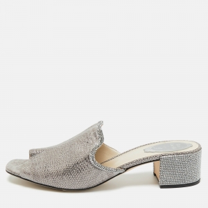 René Caovilla Silver Embossed Snakeskin and Crystal Embellished Mesh Galaxia Sandals Size 38