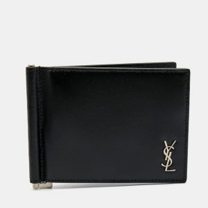 Saint Laurent Black Leather Bifold Money Clip Wallet