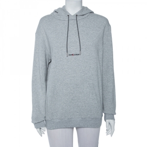 Saint Laurent Paris Grey Logo Printed Cotton Knit Hoodie S