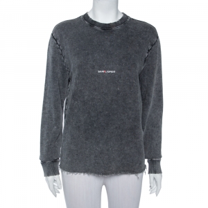 Saint Laurent Paris Charcoal Washed Out Cotton Frayed Hem Distressed Sweatshirt S