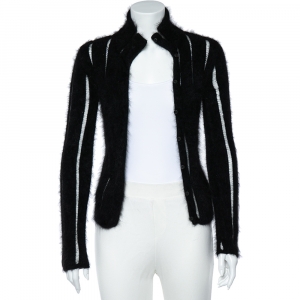 Yves Saint Laurent Rive Gauche Black Angora Paneled Cardigan S