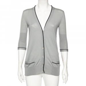 Saint Laurent Grey Wool Knit Contrast Trim Detailed Button Front Cardigan S