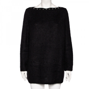 Saint Laurent Black Mohair Stud Embellished Neck Detailed Sweater XL