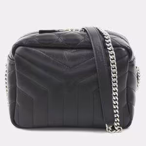 Saint Laurent Paris Ysl V-Stitched Quilted Leather Shoulder Bag In Black