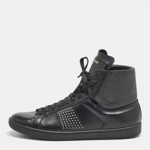 Saint Laurent Black Leather Court Classic Lips Low Top Sneakers Size 40